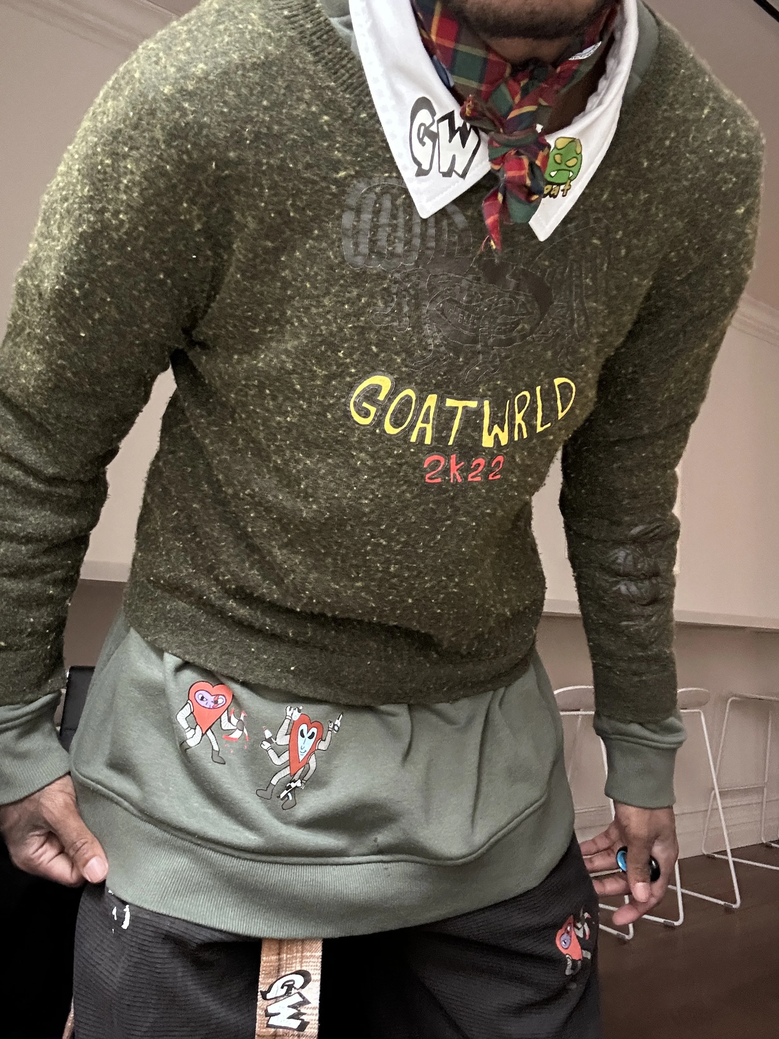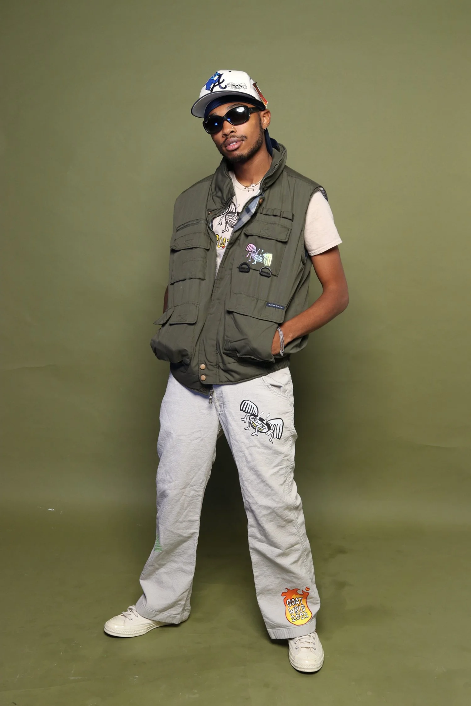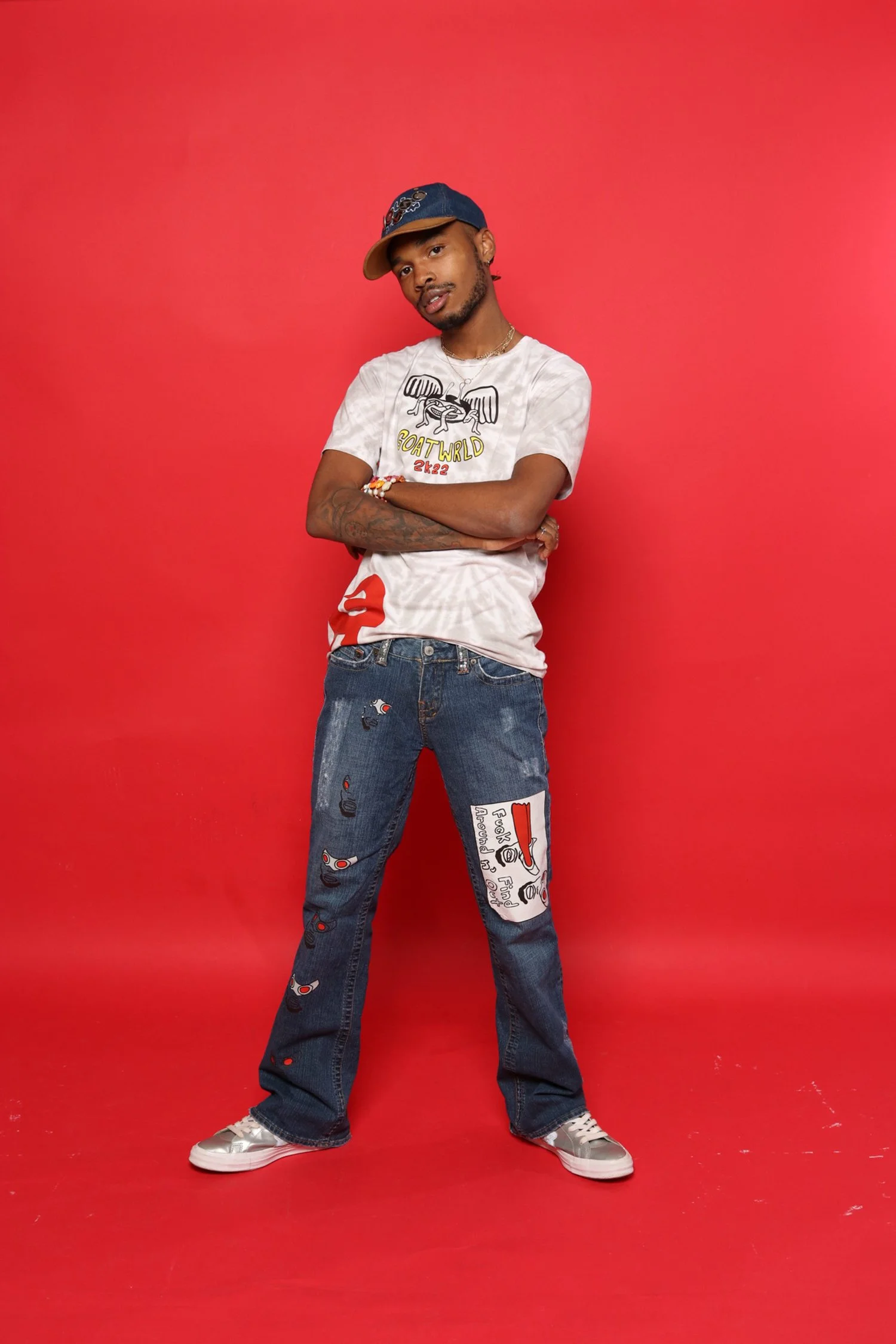 From the GOATWRLD PROBLEMS "LONG SLEEVE" JACKET, featuring a unique blend of nylon and denim materials, to the ATLantis Ocean Drip Jeans, crafted from a combination of different denim squares with a pink mesh overlay, each piece tells a story of creativity and innovation.