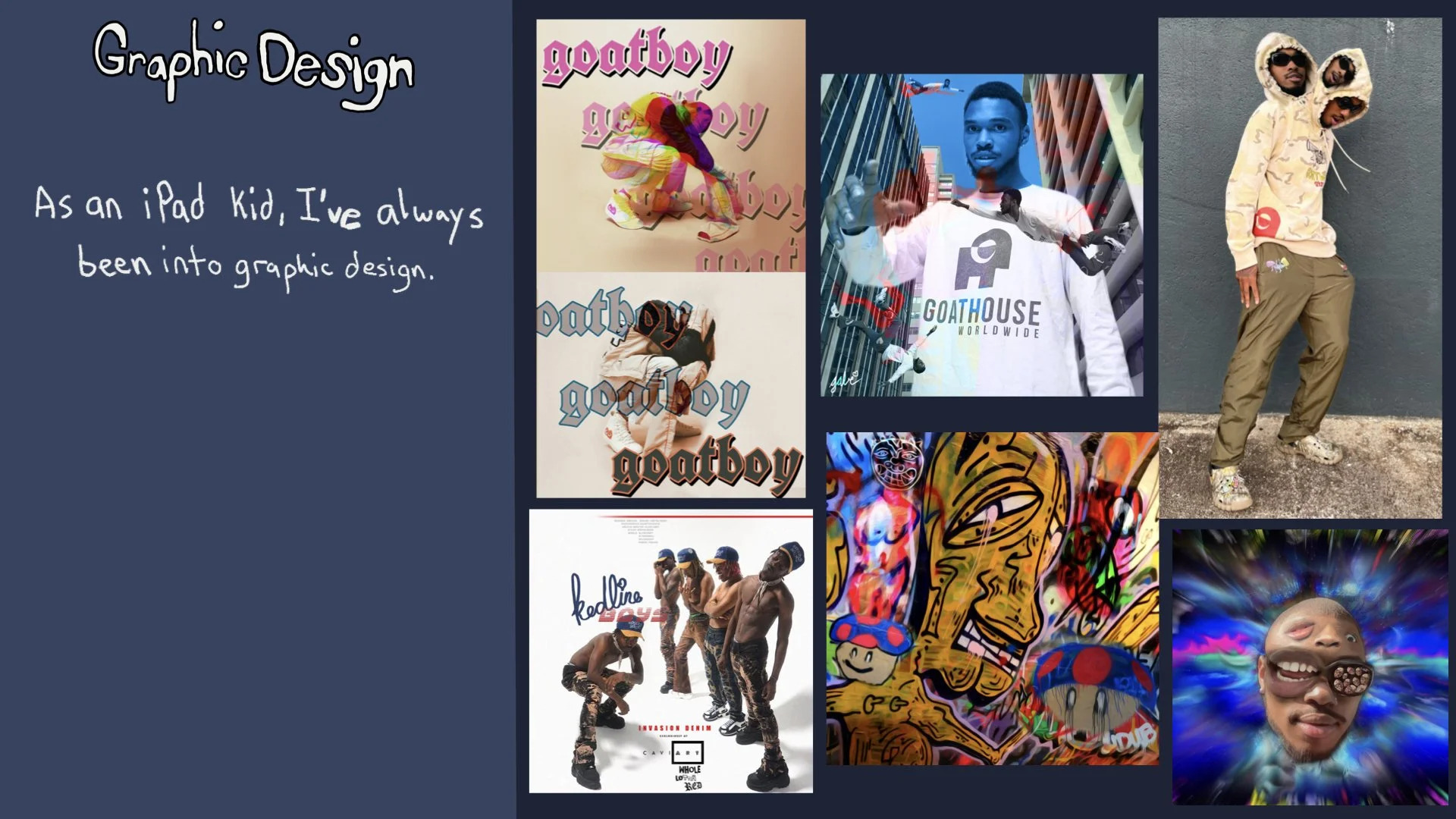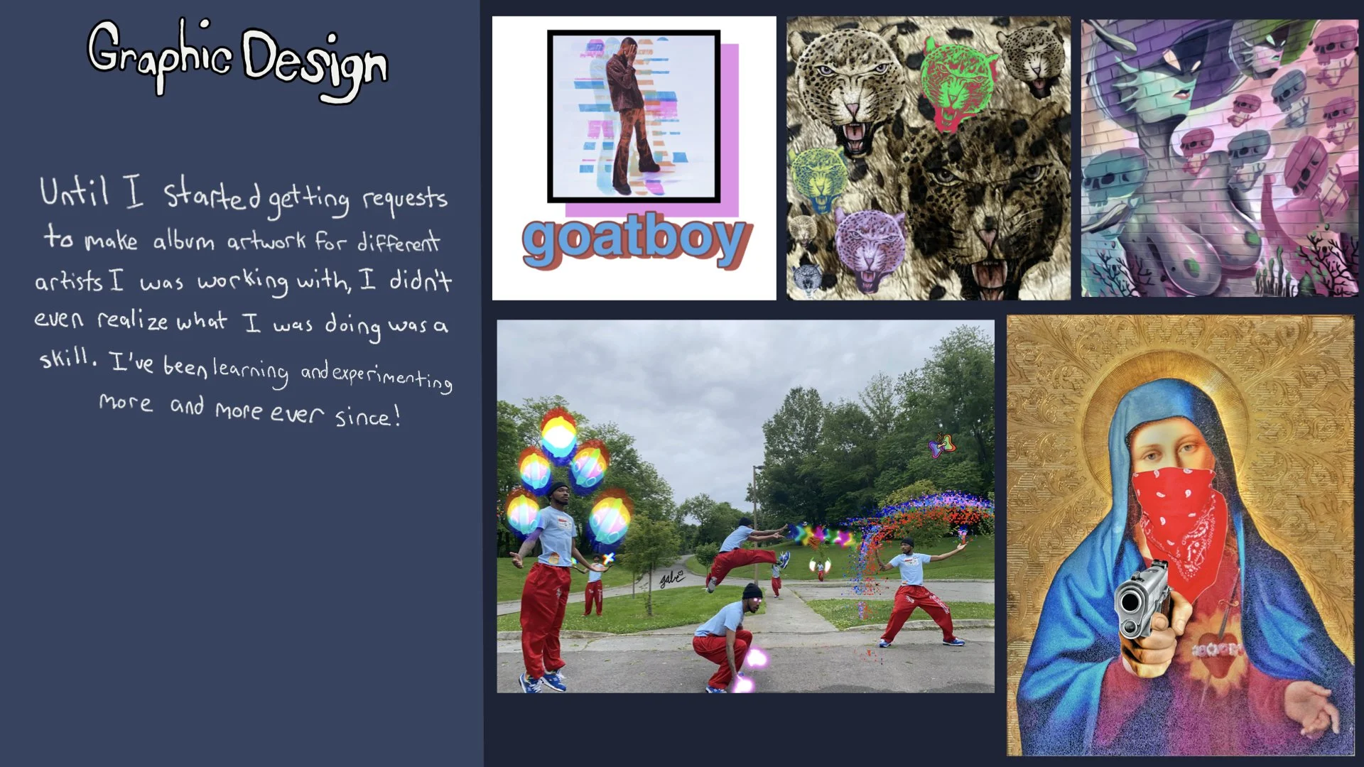 A showcase of creative works from images to beats, illustrating versatility and artistic evolution over time